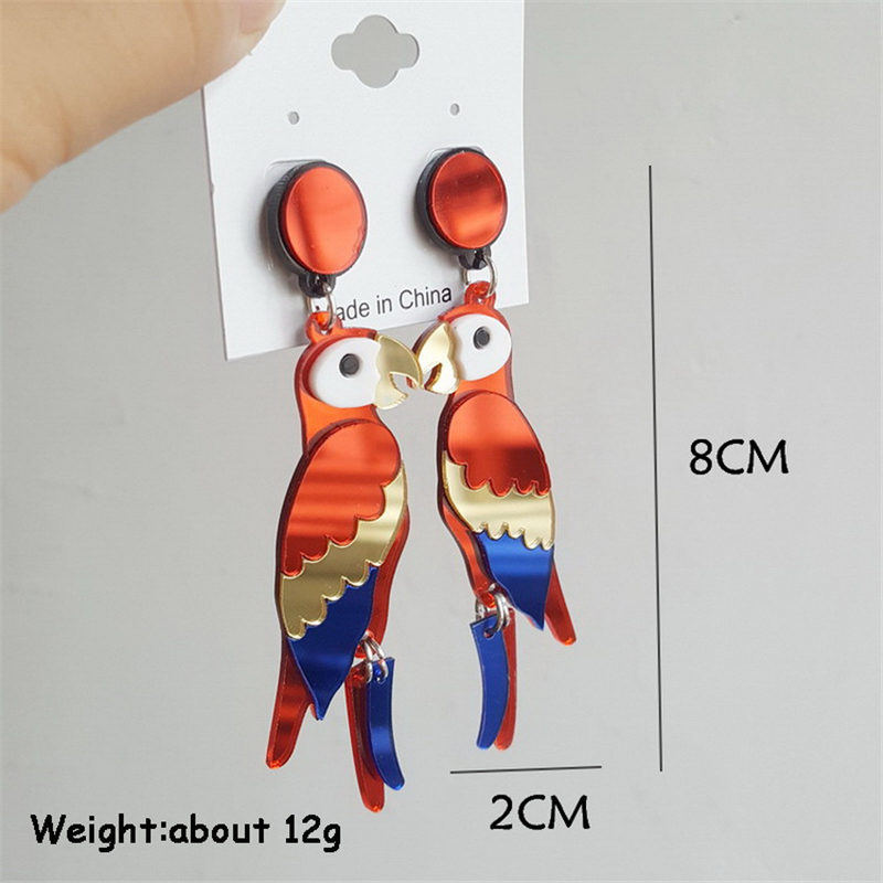 Name:Donarsei Cute Colorful Parrot Acrylic Earrings For Women Acetate Fashion Animal Bird Long Drop Dangle Earrings Party