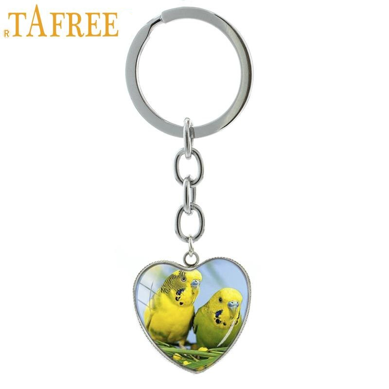 Colorful Parrot Animal Bird heart pendant key chain ring fashion men women jewelry.